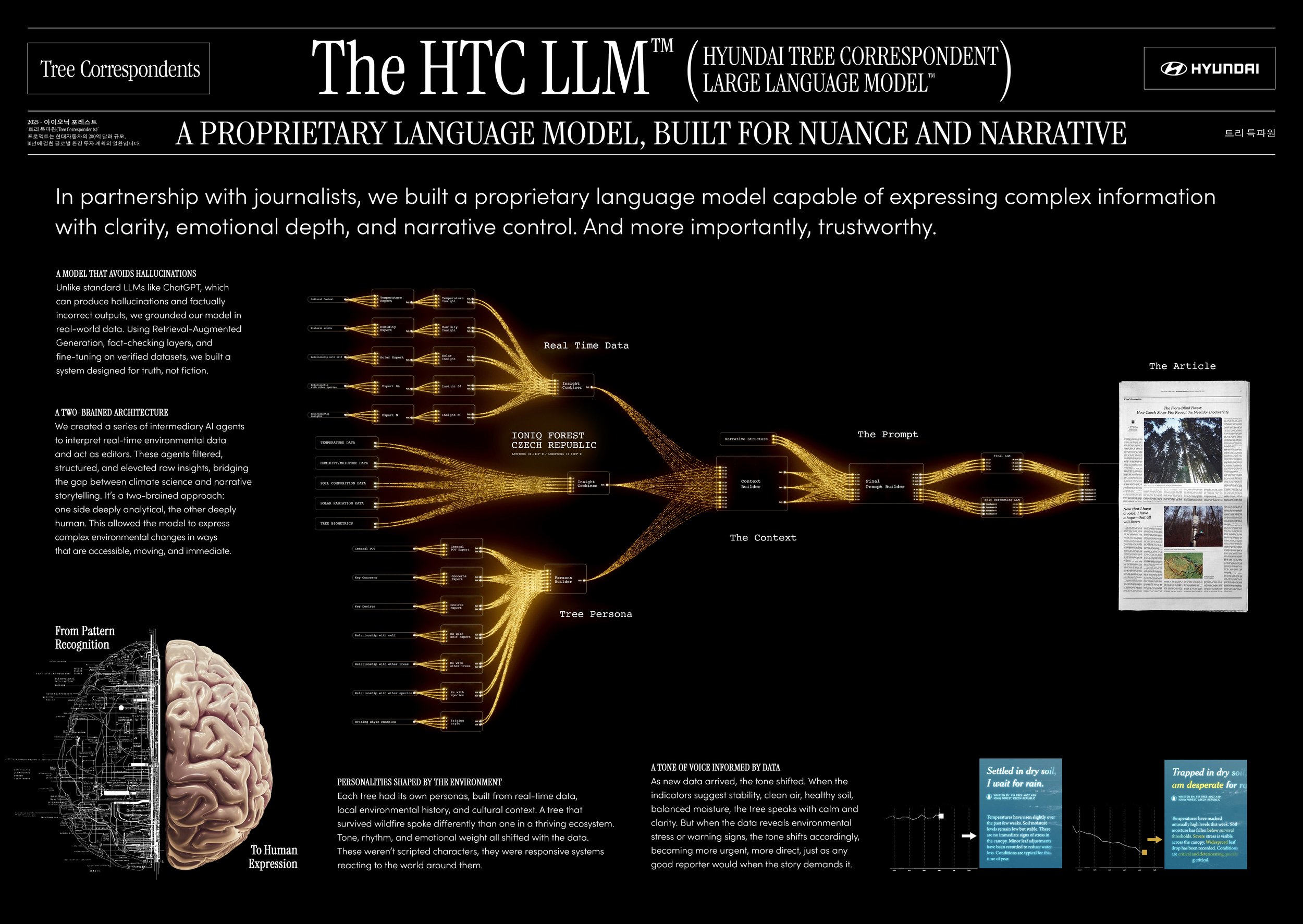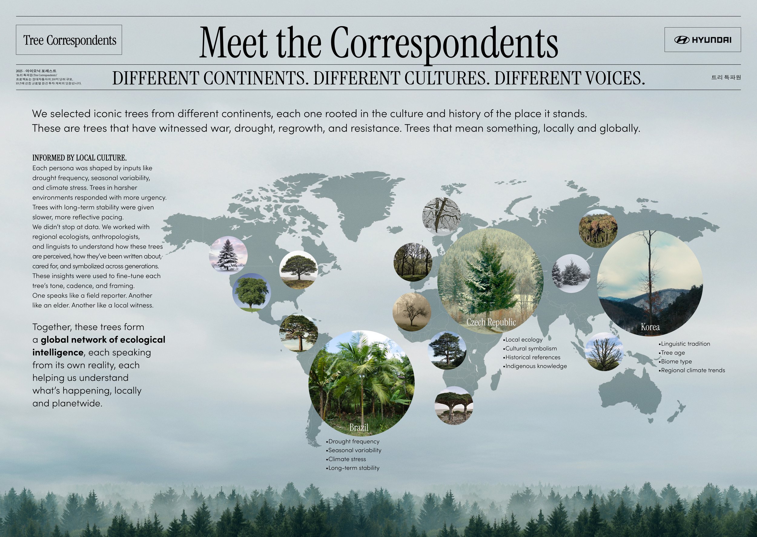 Every year, deforestation claims millions of hectares of woodlands. But only 5% of all global warming press coverage talks about it. So, Hyundai gave trees a voice, to let them speak up for themselves. By collecting data from trees on three different continents and processing it with bespoke AI tools, Hyundai turned that data into language, creating an entirely new way for journalists to communicate with trees. The only question is, now that they can speak, will we listen?